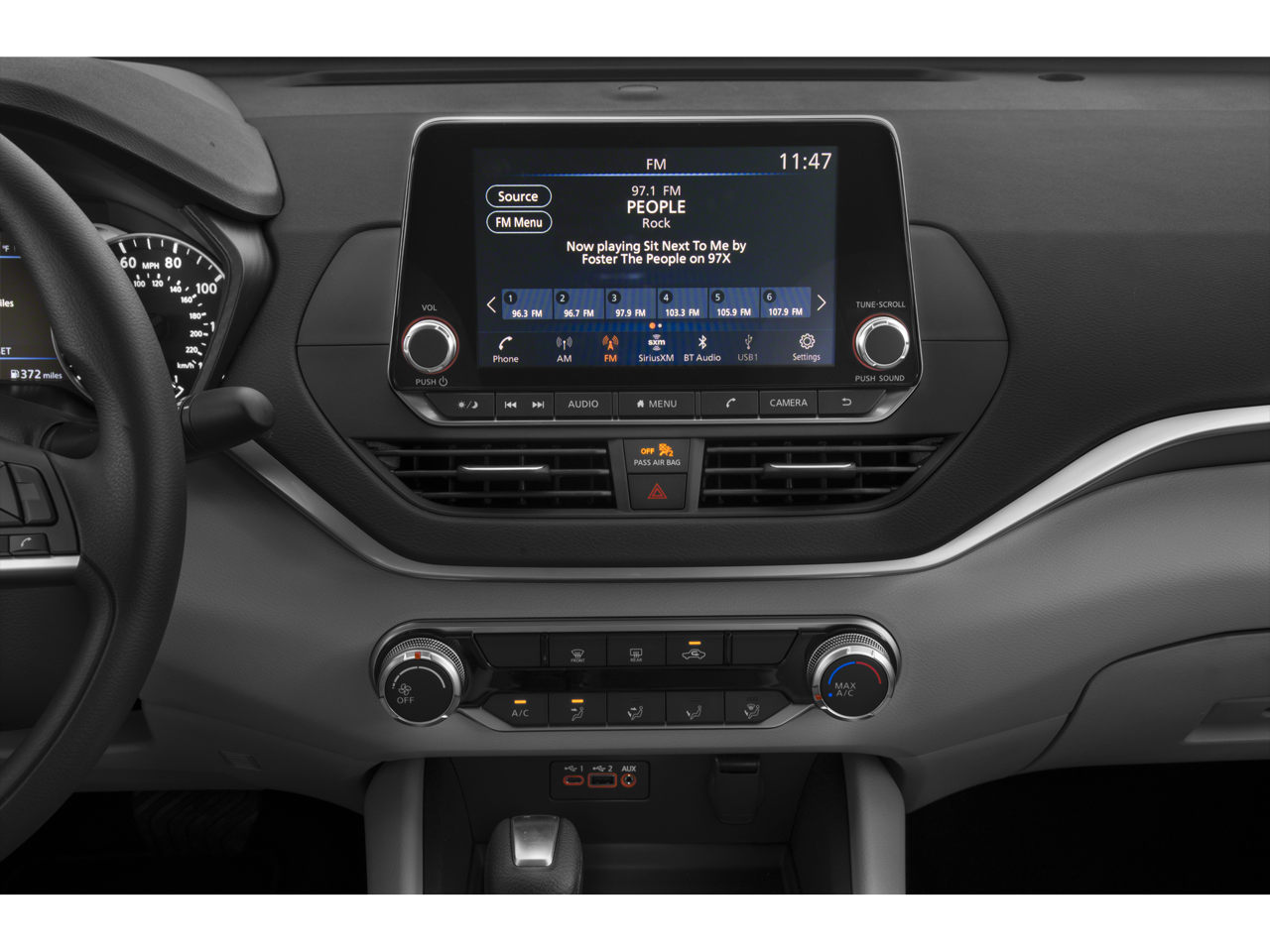 - Radio: AM/FM Audio System -inc: RDS, MP3, aux-in, 6 speakers, 7" color touch-screen display audio system, Bluetooth hands-free phone system, streaming audio via Bluetooth, hands-free text messaging assistant, 1 front illuminated USB ports (type-A) for compatible devices, Siri Eyes Free/Google Assistant voice recognition