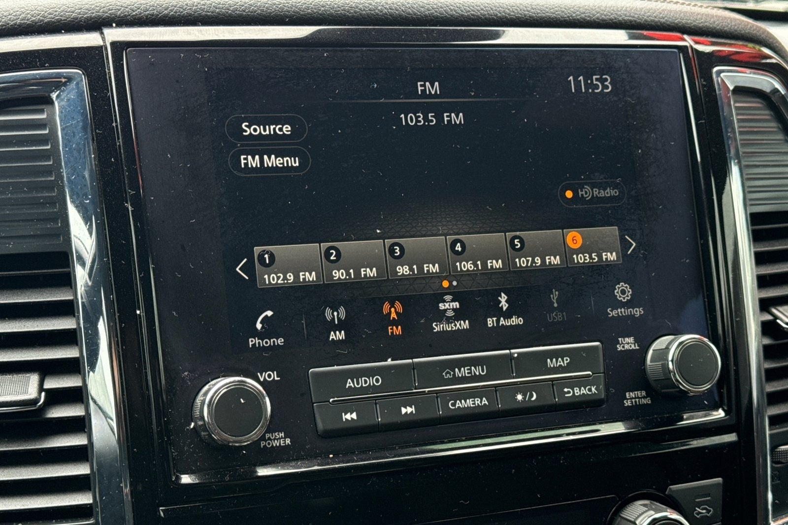 - Radio: NissanConnect w/Navigation -inc: 9" touchscreen display, 12 speaker Fender premium audio system, Apple CarPlay, Android Auto, HD Radio, SiriusXM satellite radio, SiriusXM Traffic, SiriusXM Travel Link w/weather, fuel prices, movie listings, stock info, sports and parking, TomTom weather, Nissan door to door navigation w/3D building graphics and satellite imagery, online POI search, over-the-air map updates and online premium traffic information, 2-USB (1 type A, 1 type C) connection ports for iPod interface and other compatible devices, 2 USB A ports (charge only), Bluetooth hands-free phone system, streaming audio via Bluetooth, hands-free text messaging assistant, Nissan Connect services, WiFi hotspot, Nissan voice recognition for navigation and audio, Siri Eyes Free and follow me home function