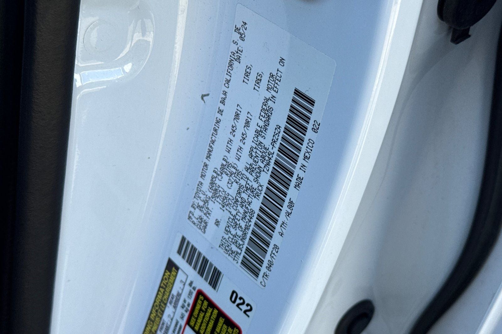 - Vehicle Name: Toyota Tacoma 4WD
